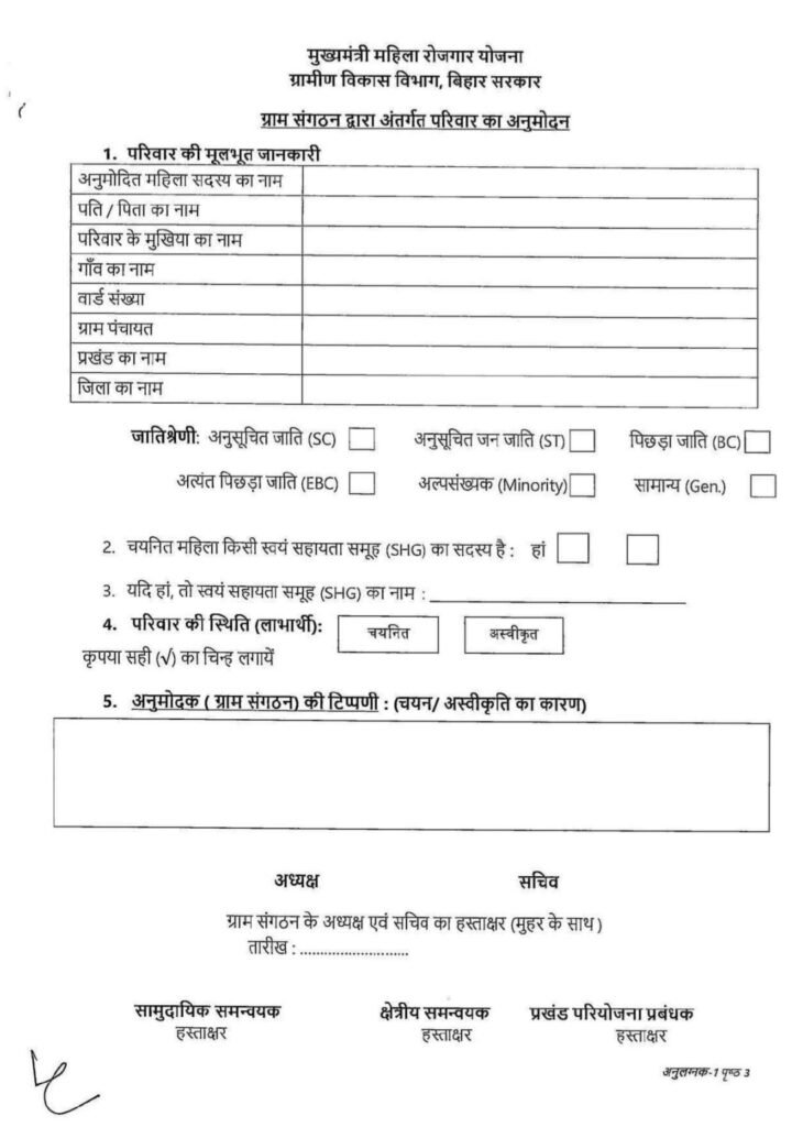 मुख्यमंत्री महिला रोजगार योजना में फॉर्म भरने के लिए जरूरी डॉक्यूमेंट