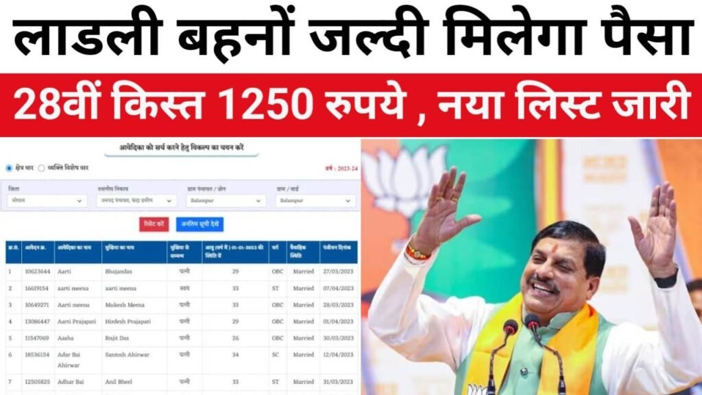 Ladli Behna Yojana 28th Installment Good News: करोड़ों लाडली बहनों में खुशी की लहर ! इस बार जल्दी मिलेगा पैसा , लिस्ट में नाम देखें