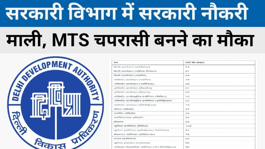 DDA – Delhi Development Authority : नौकरी की तलाश कर रहे उम्मीदवारों के लिए दिल्ली डेवलपमेंट अथॉरिटी की तरफ से